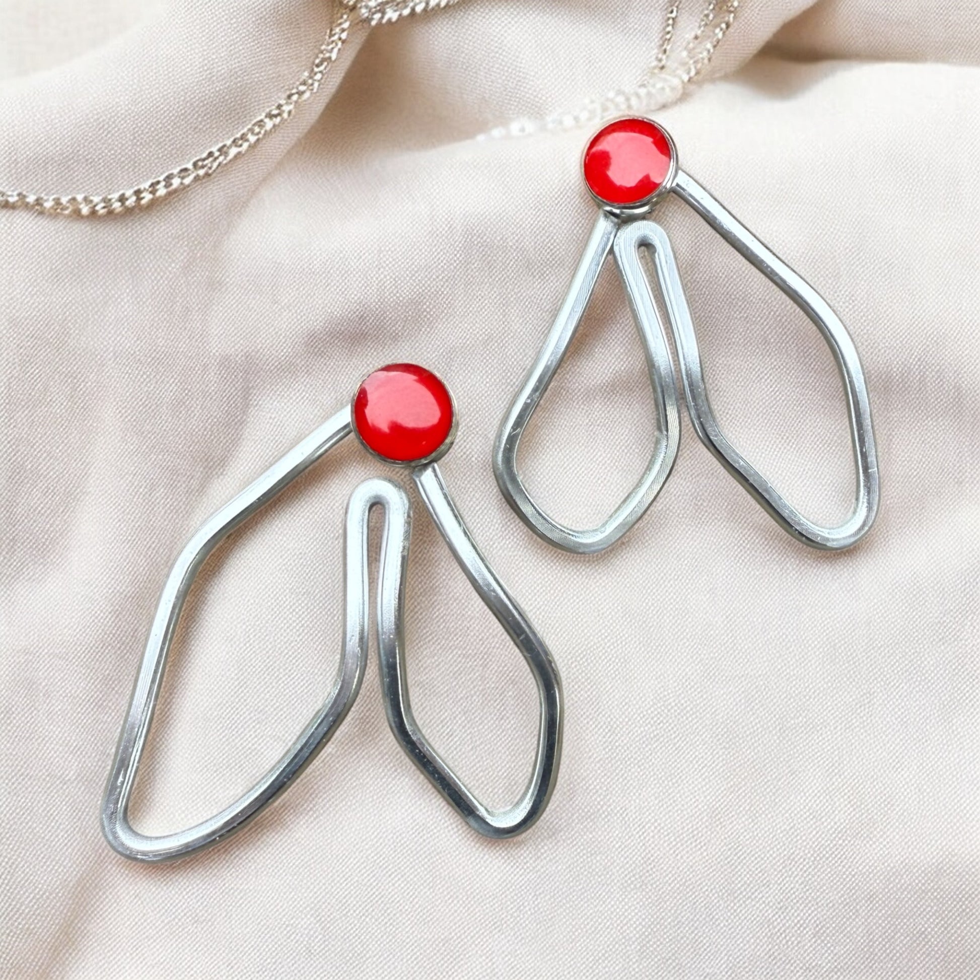 Bold and modern, these handmade ear jackets feature a organic leaf design anchored by a striking accent stud. Lightweight yet eye-catching, they can be paired with different studs for a versatile statement look.
